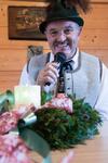 Im beheizten Spiegelzelt vom Hans-Peter Porsche Traumwerk, liest Lenz Berger die Rupertiwinkler Weihnachtsg´schicht von Karl Robel (Teisendorf) vor. Bei der Lesung wird er musikalisch und gesanglich begleitet und untermalt.