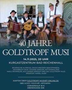 Treffen bairisch-alpenländischer Sänger und Musikanten anlässlich des Jubiläums "40 Jahre Goldtropf Musi".