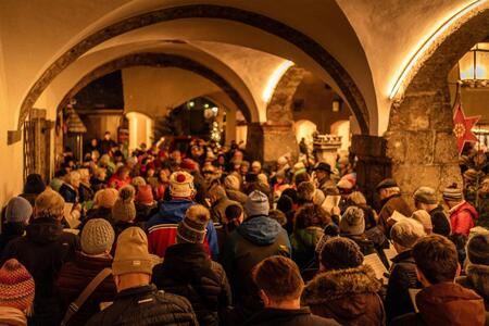 Auch dieses Jahr bietet das Volksmusikarchiv im Advent in ganz Oberbayern die Möglichkeit zum gemeinsamen Singen. Eva Bruckner und Ernst Schusser sind in den Fußgängerzonen der oberbayerischen Städte und Gemeinden unterwegs und laden Jung und Alt zum Mitmachen ein. Den Abschluss der Reihe bildet traditionell das Singen am Schlossplatz Berchtesgaden am 23. Dezember.