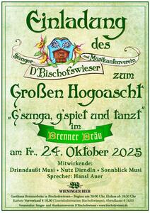 Zum großen herbstlichen Hogoascht lädt der Sänger- und Musikantenverein D’Bischofswieser am