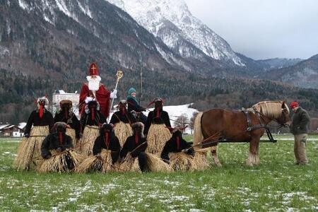 Am 5. Dezember kommt der Nikolaus in einer Kutsche mit seinen Krampusse zum Petersplatz.